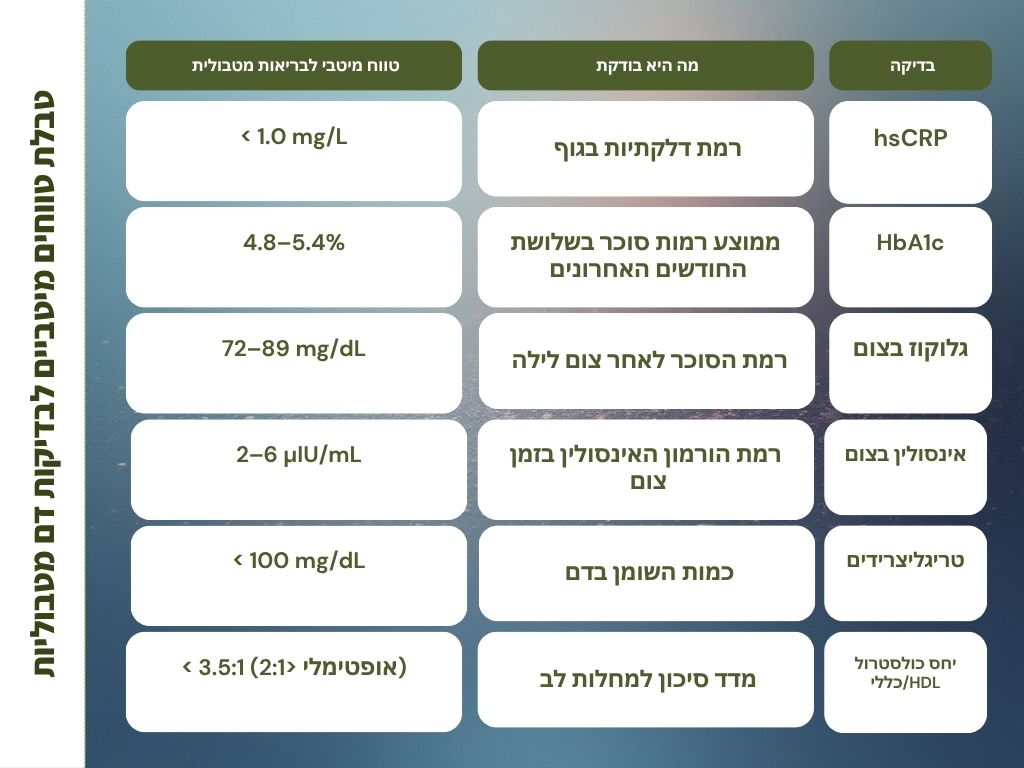 כדאי להכיר לא רק את הטווחים ה"נורמליים", אלא את הרמות האופטימליות, שמרמזות על גוף שמנהל אנרגיה בצורה בריאה.